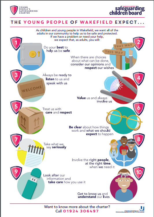 This Young People's Safeguarding Charter makes it very clear, what our children should expect. All of us at South Parade Primary School are totally invested in this charter.