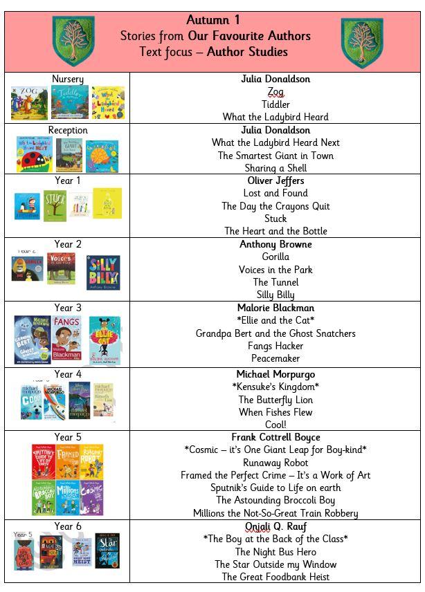 We have a clear progression map across school to ensure that pupils are exposed to high quality texts from quality authors.