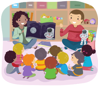 Child volunteers from Year 4 lead story sessions with children in KS1.