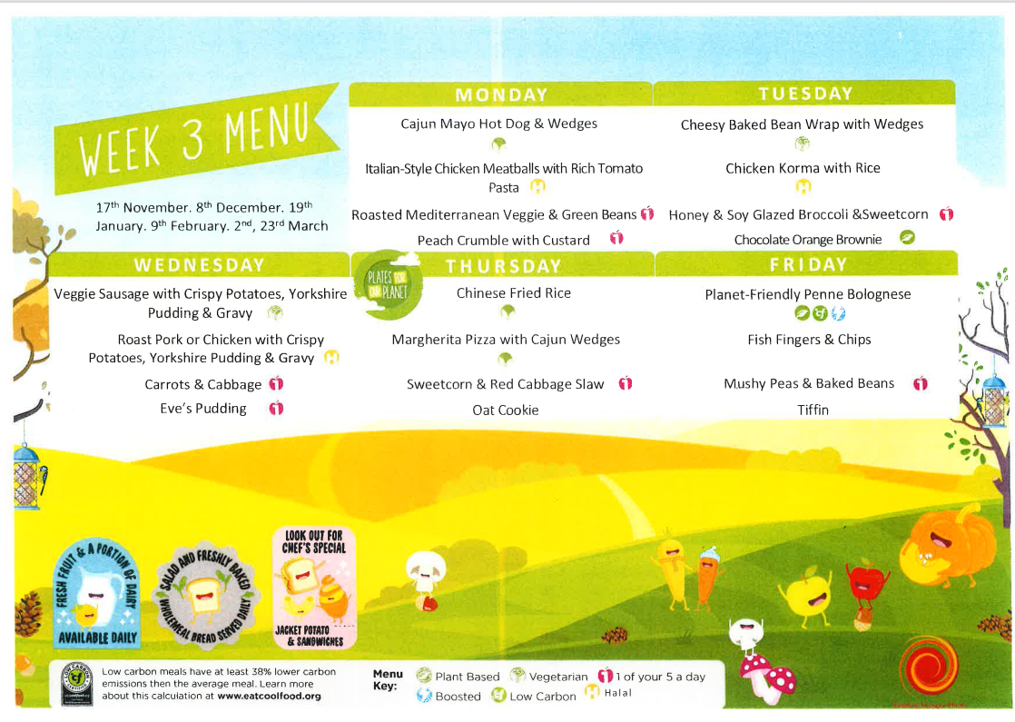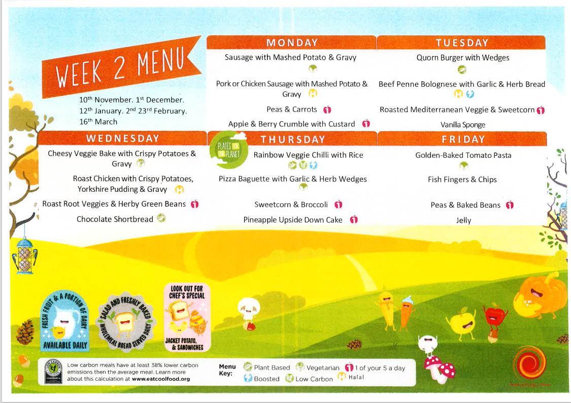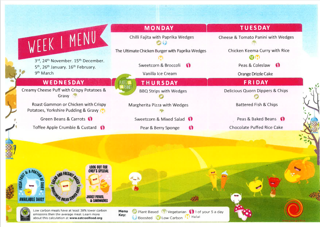 All of our delicious school meals are provided by ISS Catering. Our Head Cook, Julie, and her team do a great job providing our children with healthy, balanced meals every day.