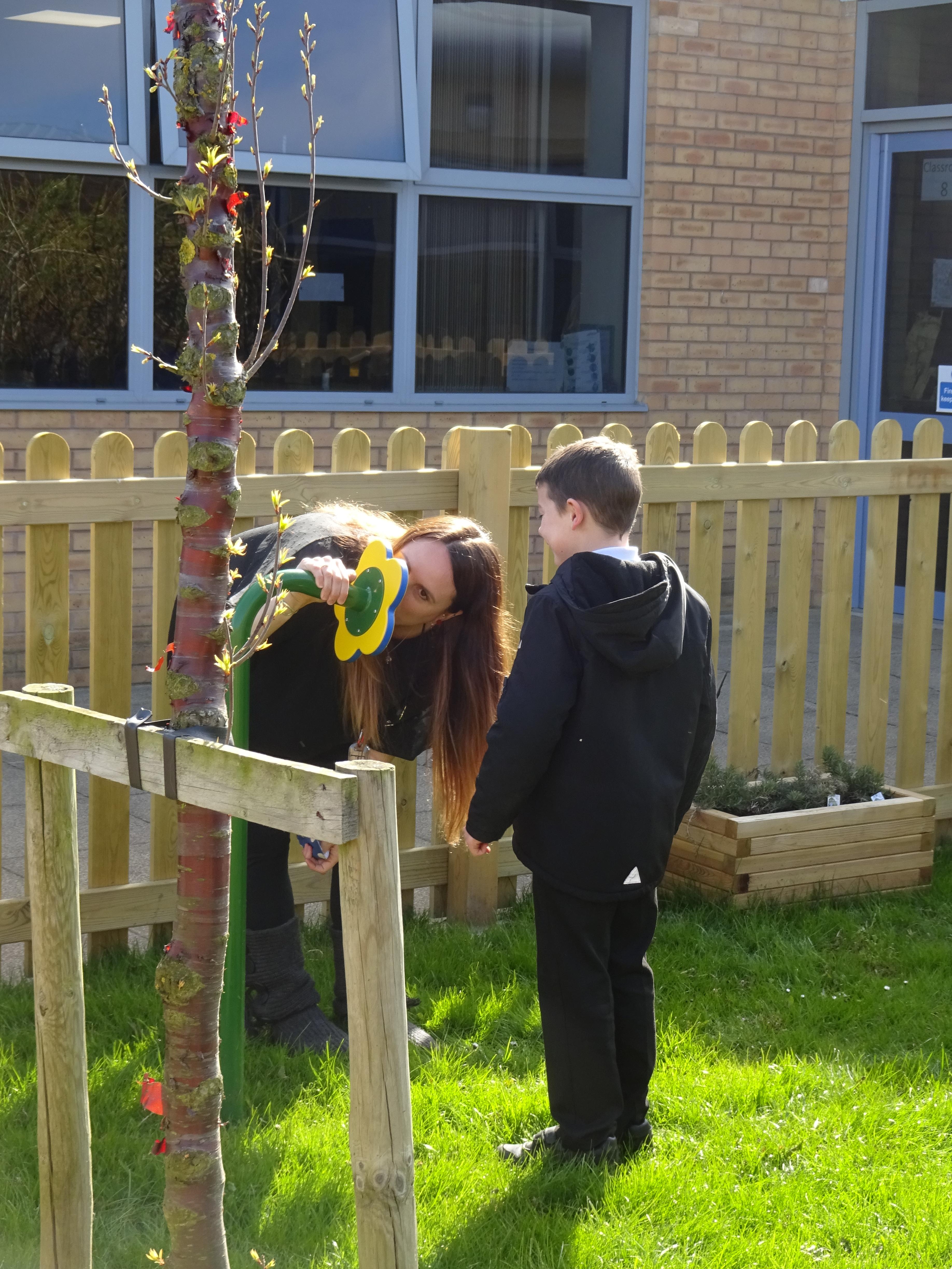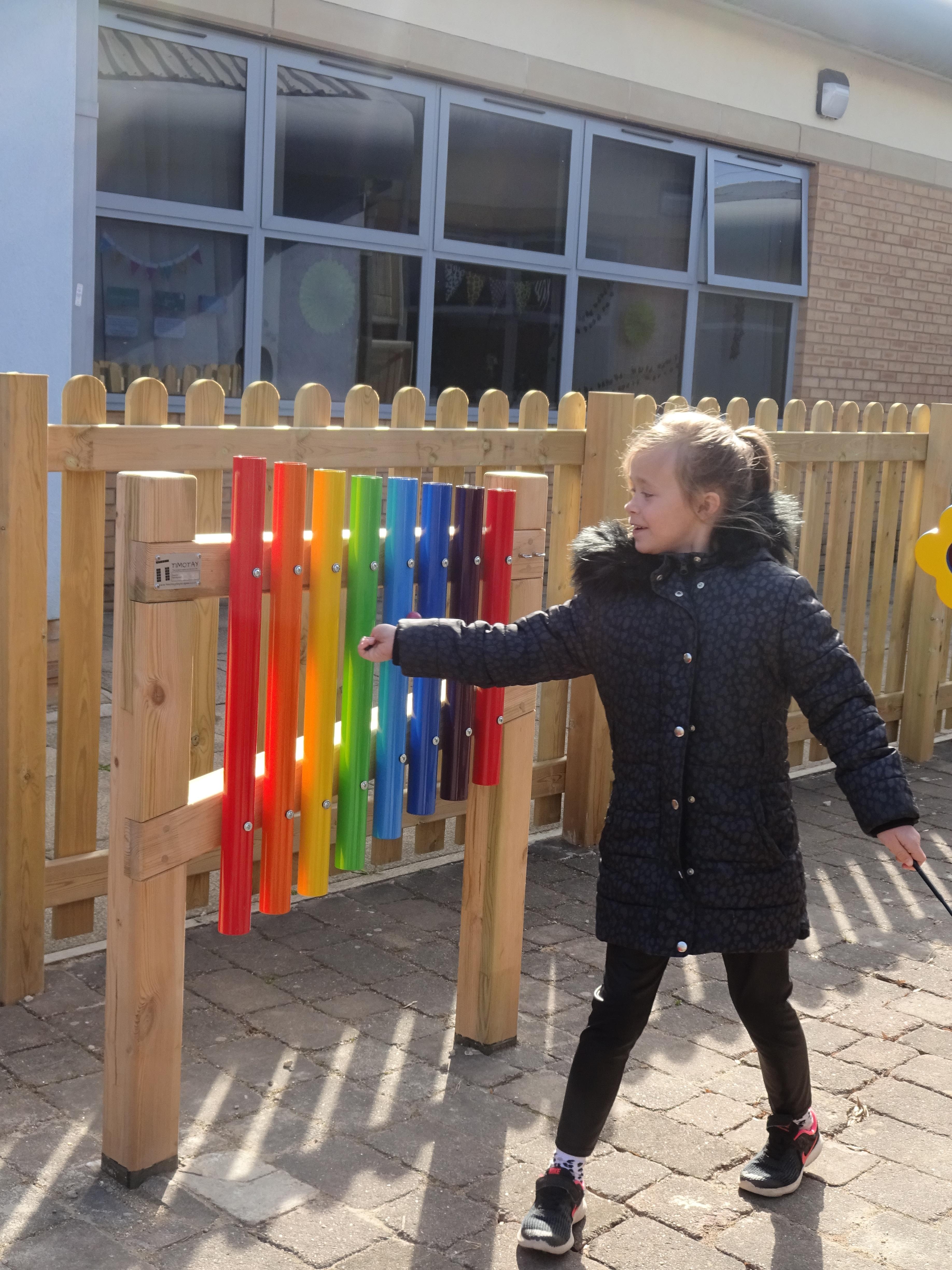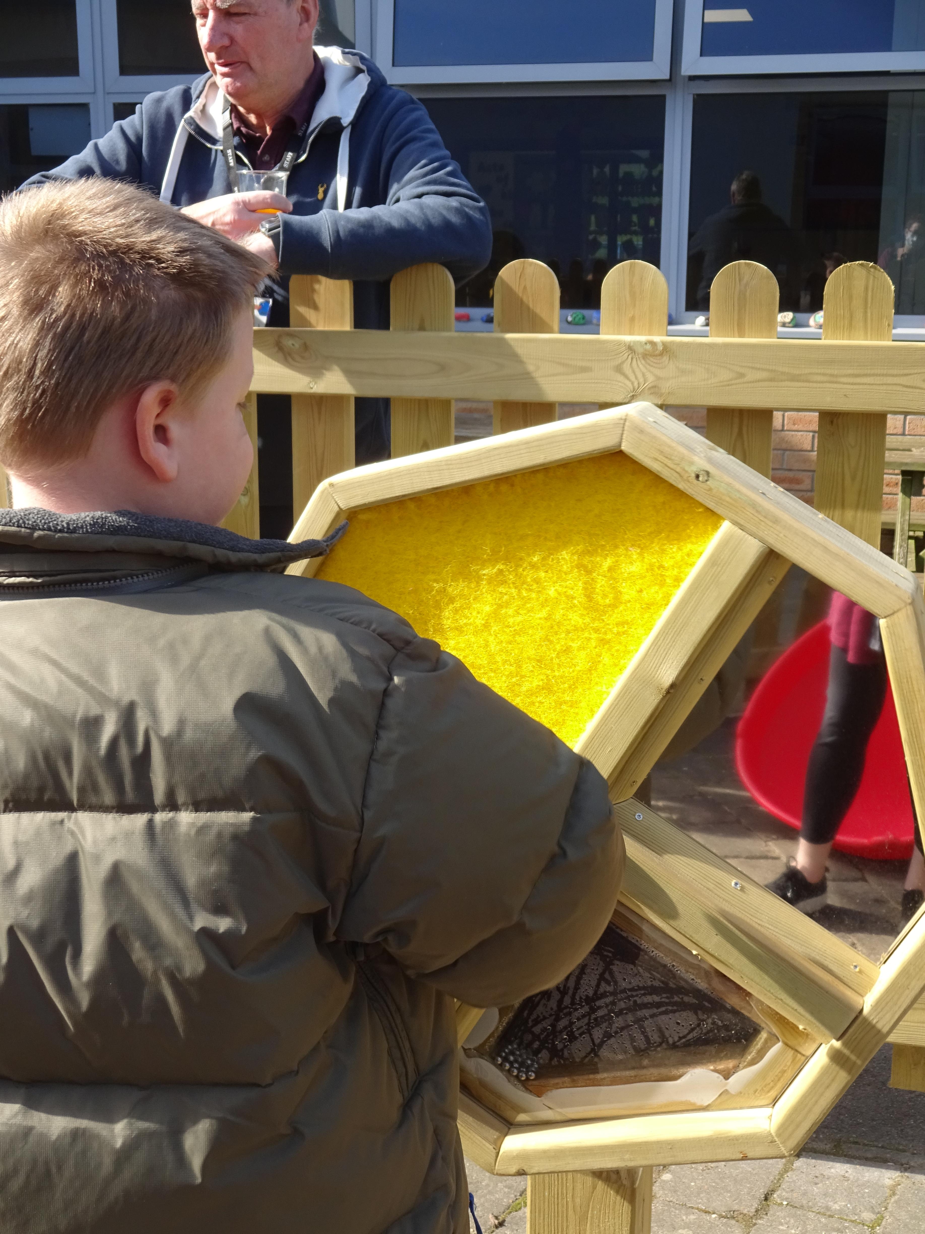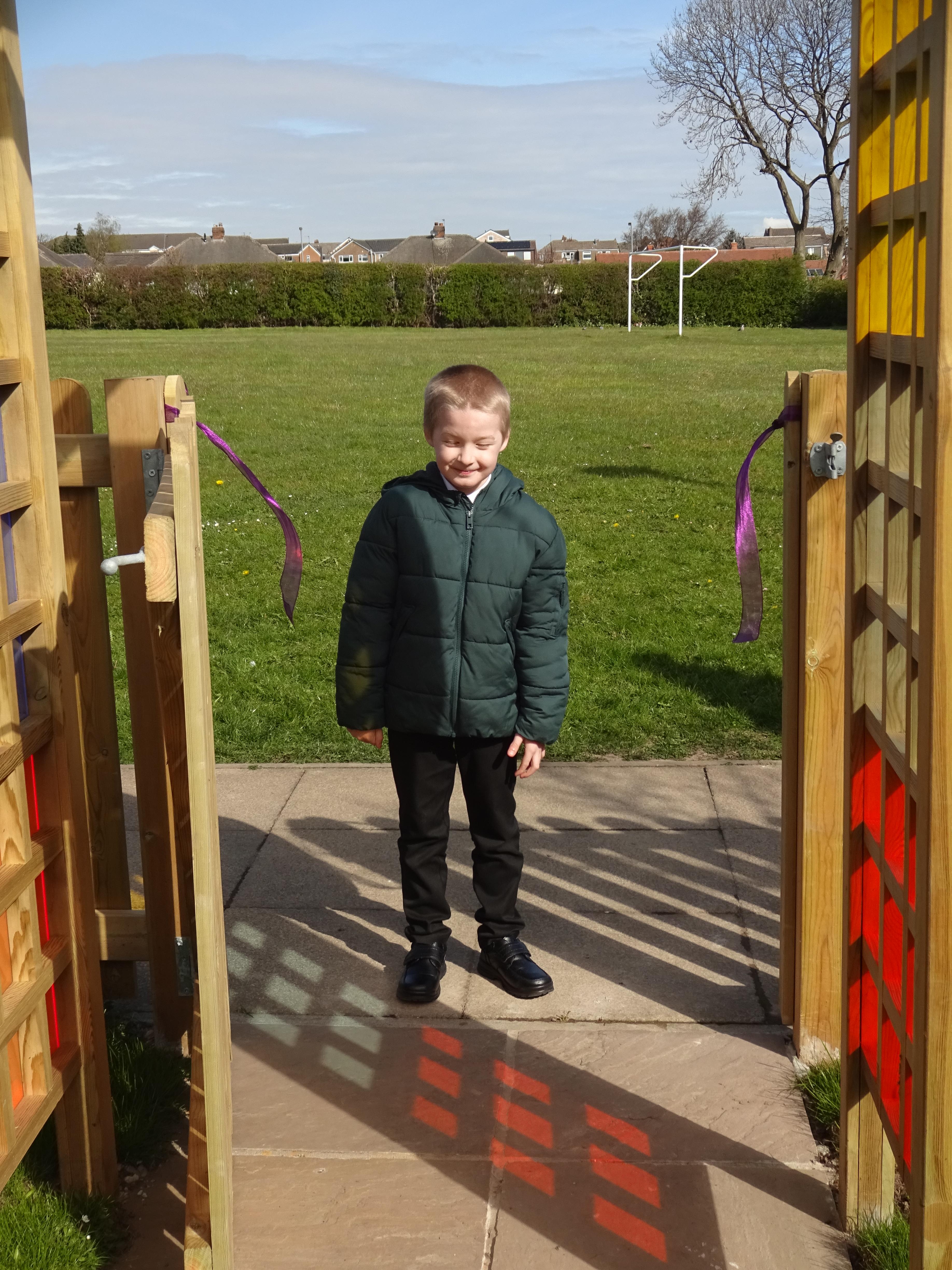 Our beautiful Sensory garden is now open! This is an area in school for any of our children to access where they will benefit from stimulating their senses whilst in the fresh air. This private, enclosed area is accessed through a perspex arch way that scatters colours along the pathway and then there are textured toadstools seats and trees scattering the lawn. The gazebo in the corner is a quiet area for the children to sit on the bean bag and read all obout feelings and choices or to just have calm time. The cobbled area houses the Musical chimes and Sensory windmill and the Giant Top strengthens muscles and body control. The Talking flowers encourage communication so that the children can talk to each other from opposite ends of the garden. There are fragrant herbs and tactile grasses planted and wind chimes hanging in the trees.