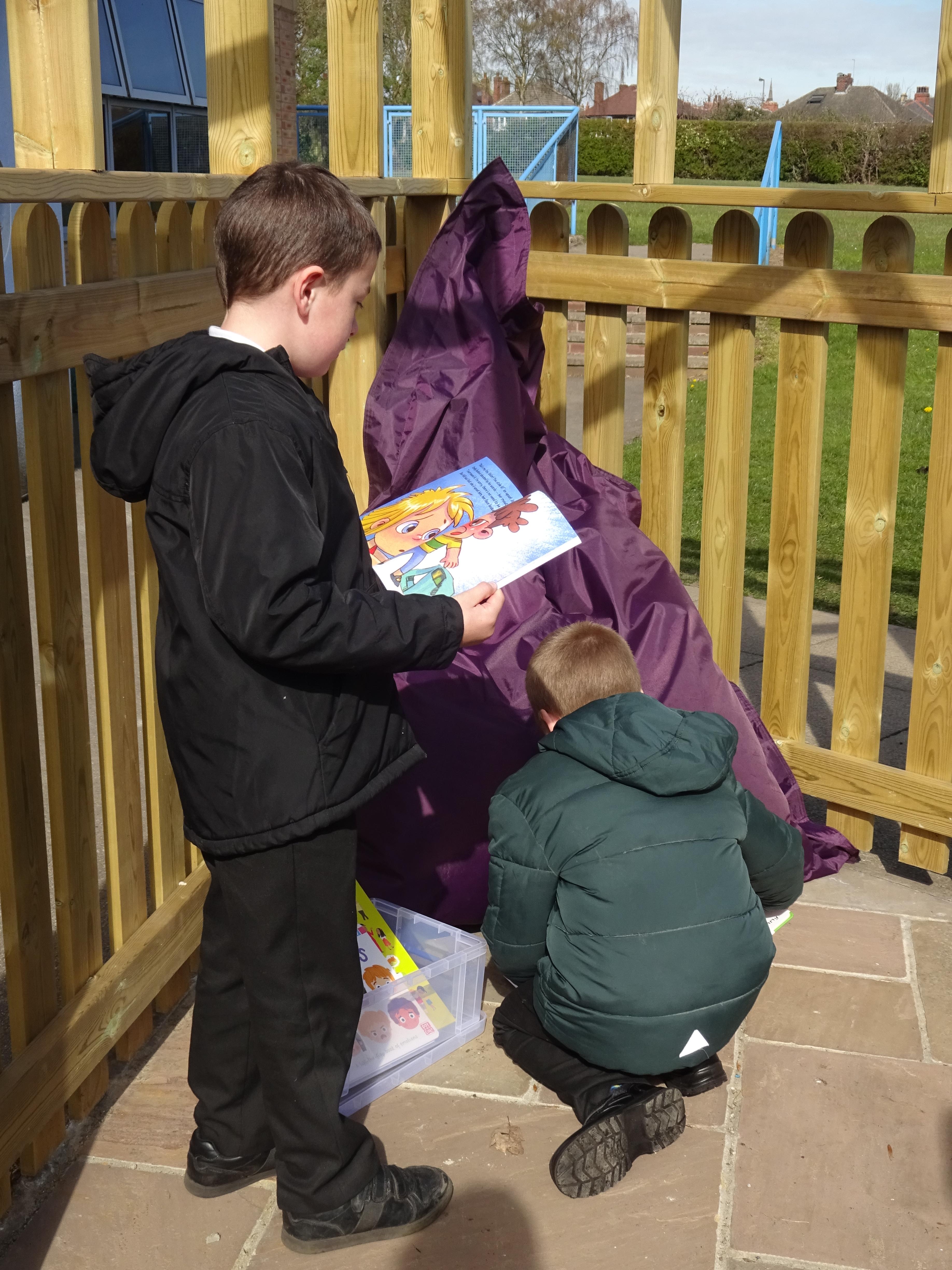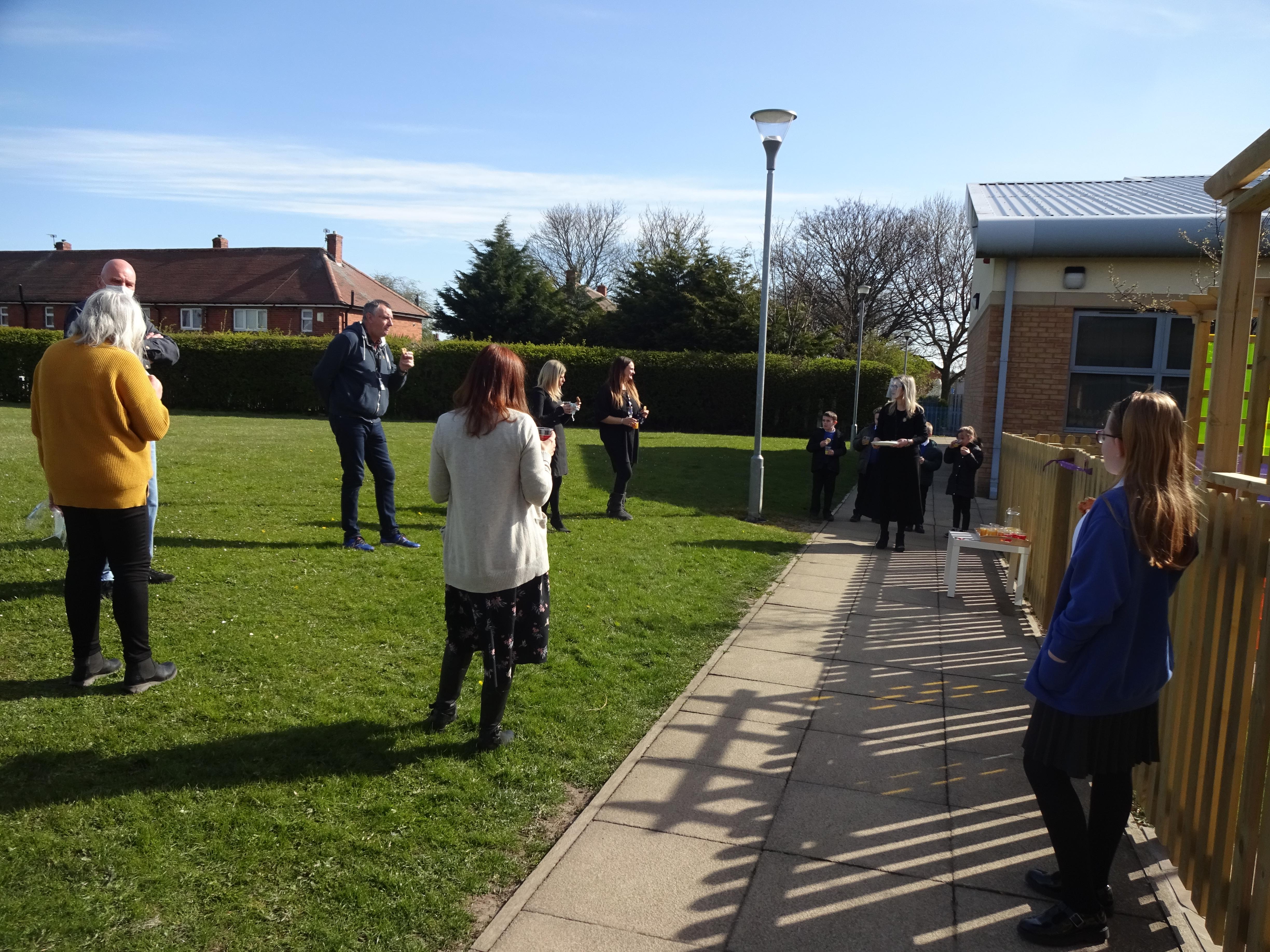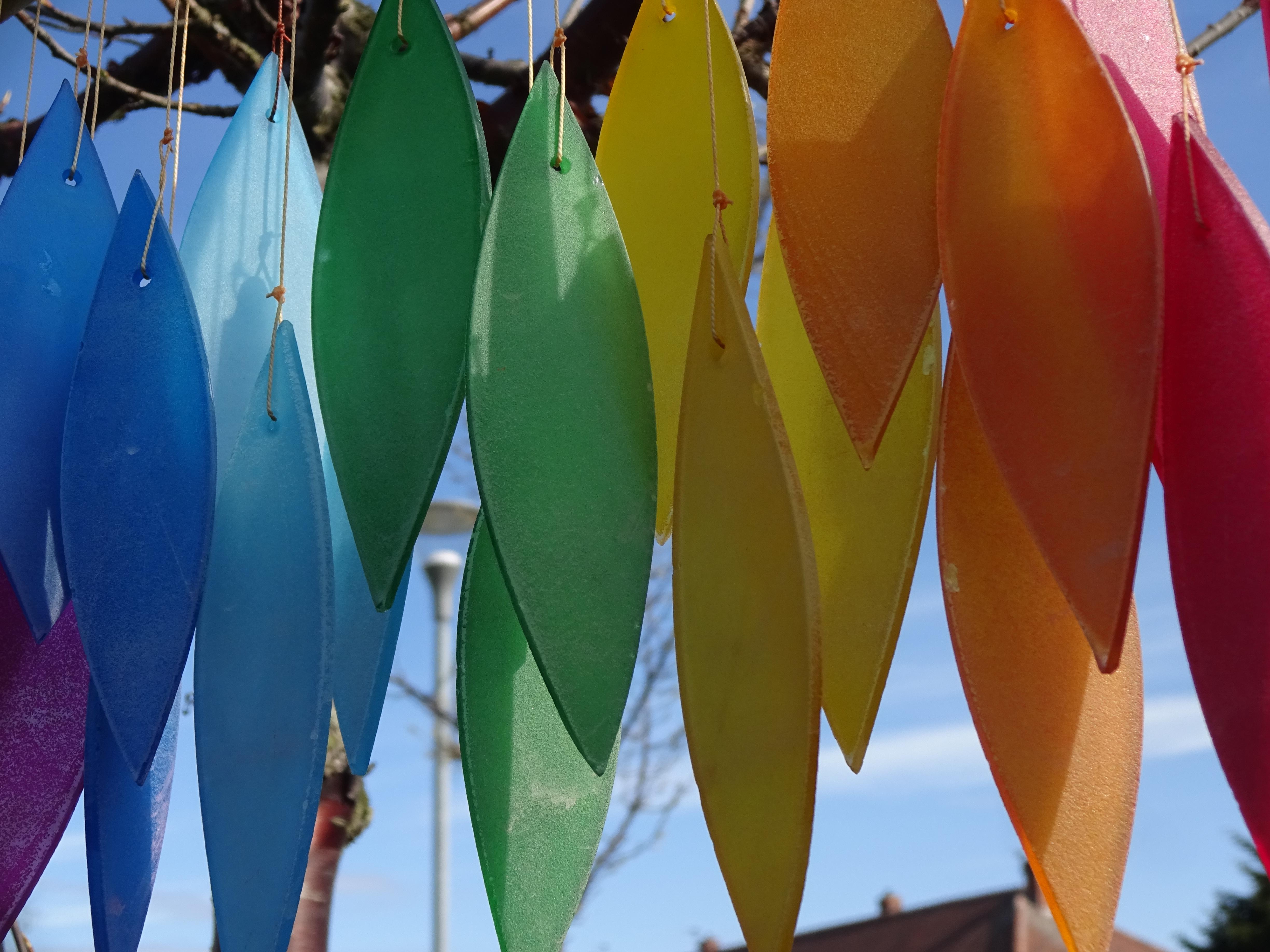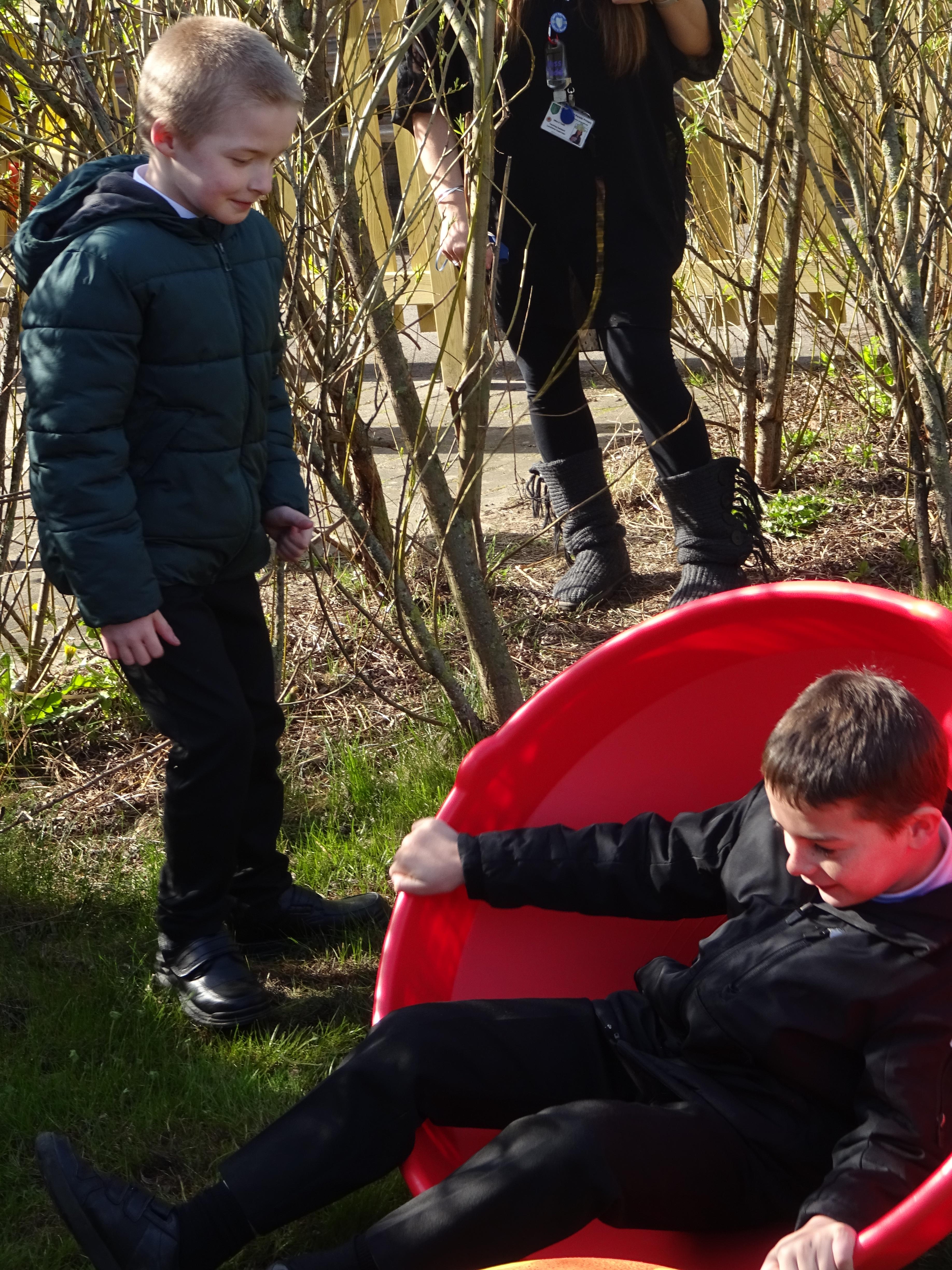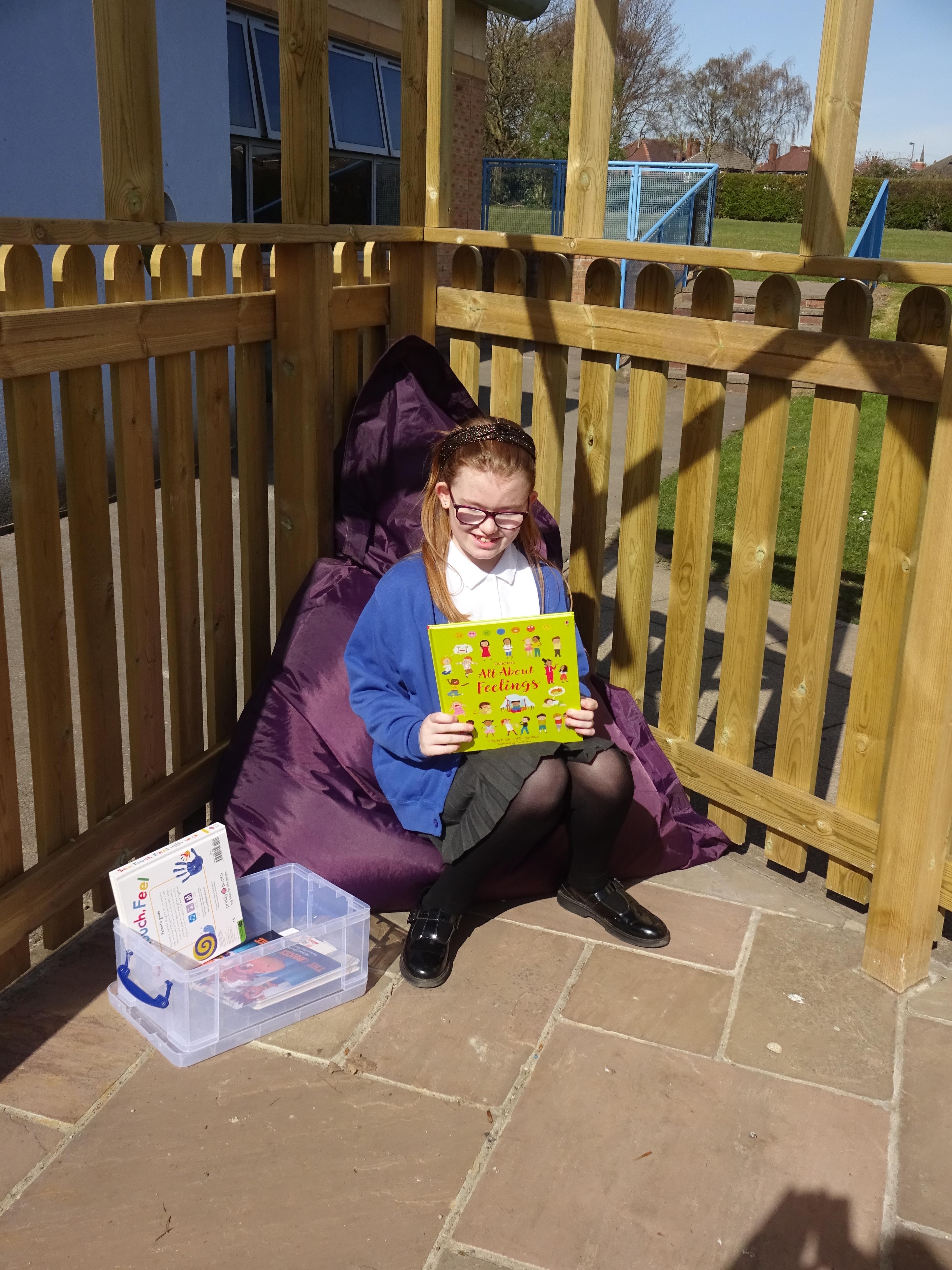 Our beautiful Sensory garden is now open! This is an area in school for any of our children to access where they will benefit from stimulating their senses whilst in the fresh air. This private, enclosed area is accessed through a perspex arch way that scatters colours along the pathway and then there are textured toadstools seats and trees scattering the lawn. The gazebo in the corner is a quiet area for the children to sit on the bean bag and read all obout feelings and choices or to just have calm time. The cobbled area houses the Musical chimes and Sensory windmill and the Giant Top strengthens muscles and body control. The Talking flowers encourage communication so that the children can talk to each other from opposite ends of the garden. There are fragrant herbs and tactile grasses planted and wind chimes hanging in the trees.