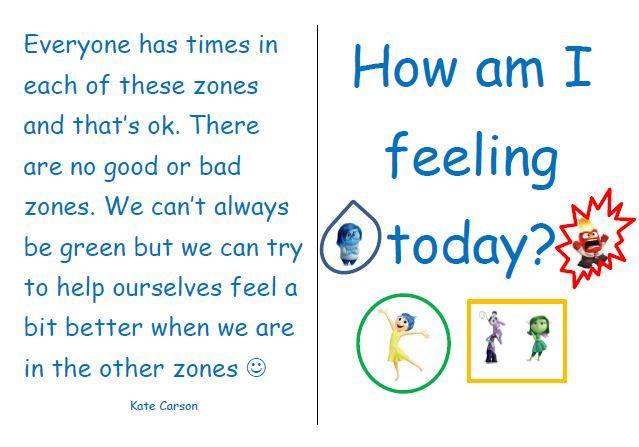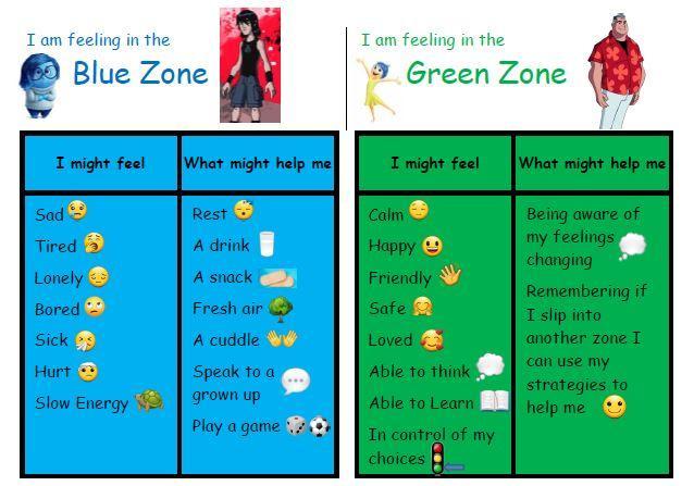 Remind them that we will experience all zones and there are no good or bad zones- however our success in regulating our emotions depends on us recognising our emotion, understanding it and putting a support strategy in place.