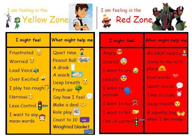 - Discuss what emotion they feel in each zone e.g. in the yellow zone I may feel worried