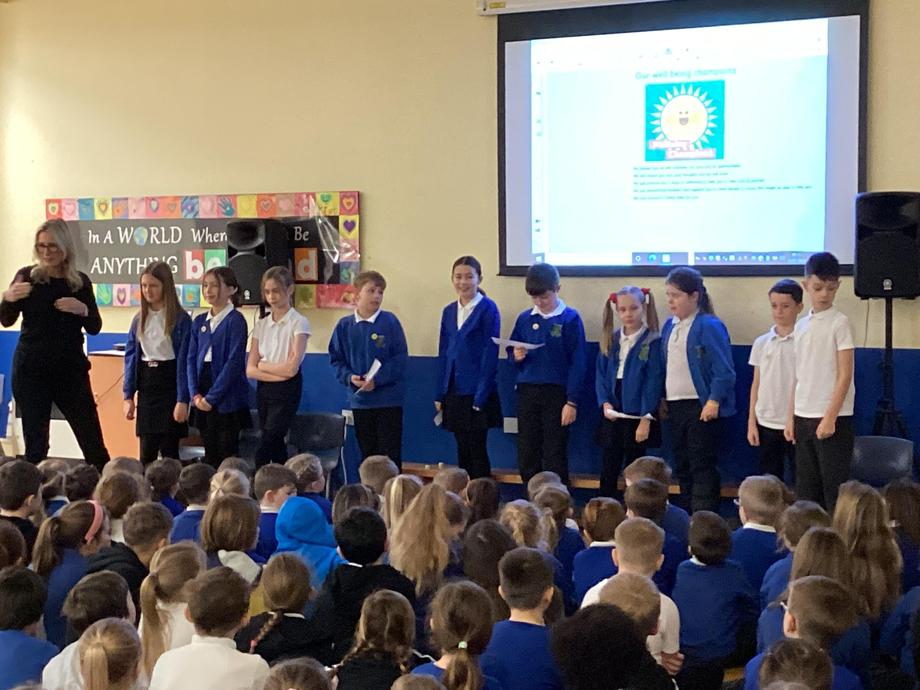 Mrs Fowles (our Senior Mental Health Lead) introduced the Mental Health Team in school and our new Well-Being Champions shared their Pledge and talked about how they would support the children.